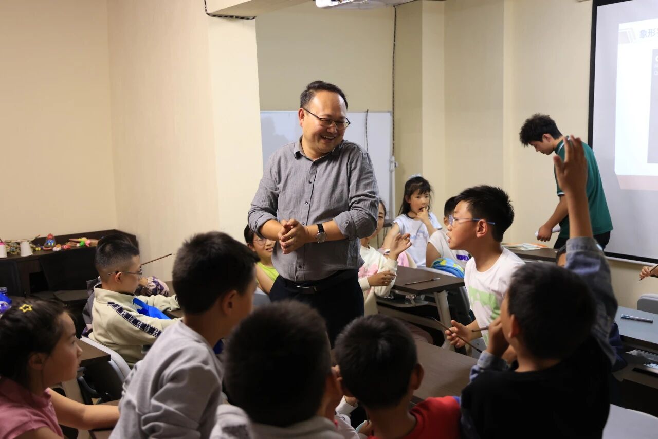 紧接的象形字画画猜环节,实践团特别邀请民航安全工程学院贾旭宏老师参与互动。贾老师手持提前准备的象形文字卡片逐一展示 “日”“月”“水” 等象形字古文字形,孩子们专注观察字形特征举手抢答。贾老师笑着揭晓答案,对猜对的孩子给予鼓励,没猜对时耐心提示字形与实物的关联,在问答互动中让传统文化知识自然传递,现场满是思考的专注与猜对的雀跃。