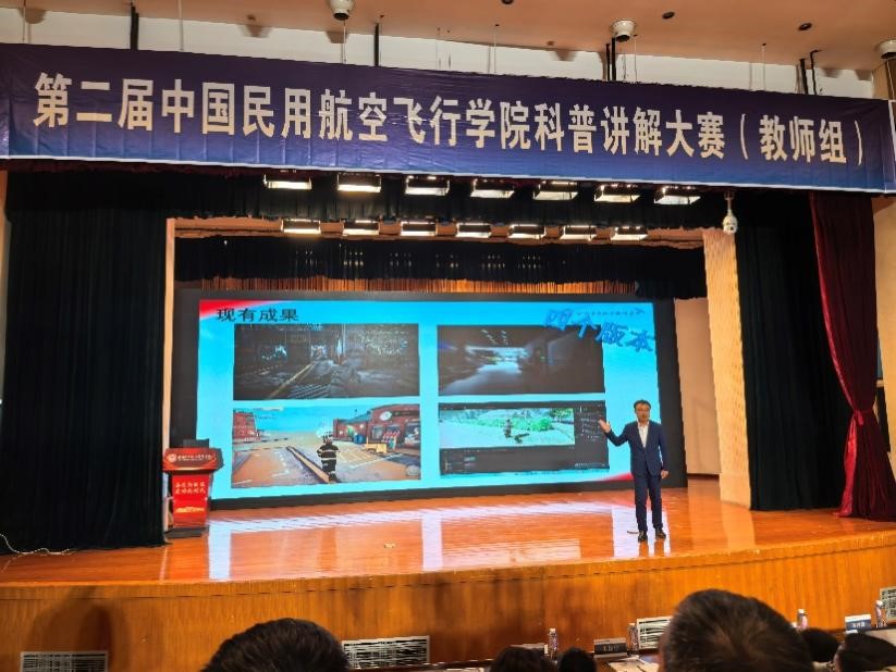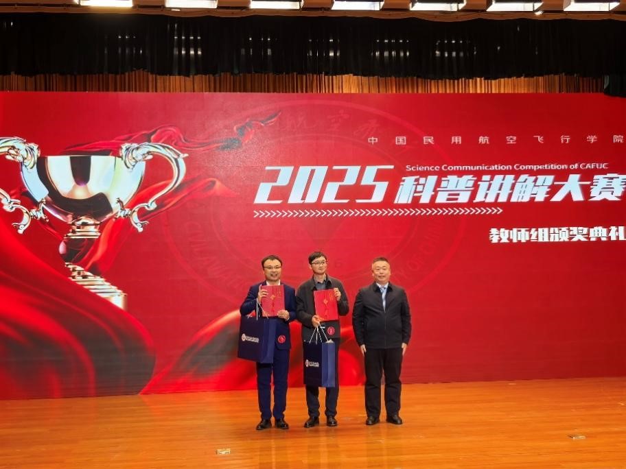 本网讯 王昊 摄影报道: 12月3日晚7时,第二届中国民用航空飞行学院科普讲解大赛(教师组)决赛在学校图书馆报告厅成功举行。经过激烈角逐,我院教师王昊凭借主题鲜明、内容专业、形式新颖的讲解,荣获教师组一等奖。学校党委副书记、组织部部长王维正为教师组一等奖选手颁奖。
