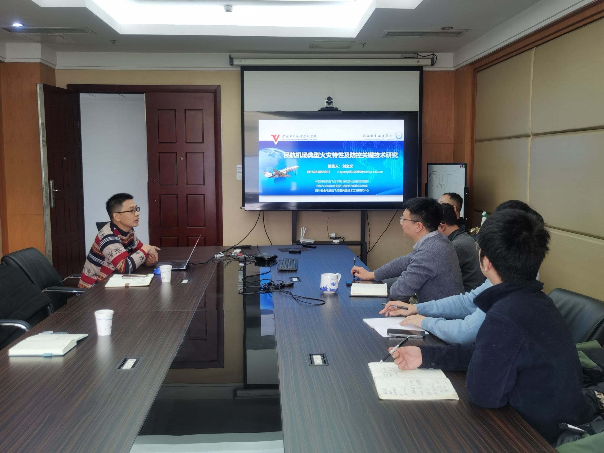 本网讯 智茂永 摄影报道:为深化校企合作,推动人才联合培养和产学研协同创新,2026年2月5日,民航安全工程学院副院长刘全义、航空安全工程中心智茂永赴应急管理部四川消防研究所进行技术交流。四川消防研究所第二研究室主任蒋亚强博士、高子善博士、程崇律博士等参加交流活动。